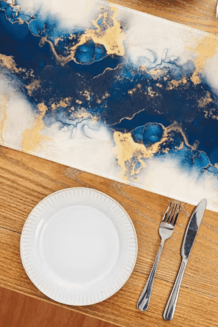1 Pc, Marble Design Table Runner, Woven Rectangular Tabletop Decor with white clouds/blue Ocean Marble Texture.