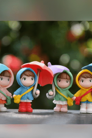 4 Pcs Set Umbrella Girl Figurines, Umbrella Friends Characters, Micro Landscape Ornament.