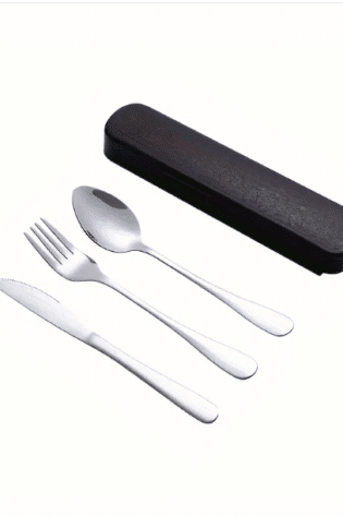 3 Pcs Set, travel cutlery with storage box, stainless steel cutlery including spoon, fork, and knife
