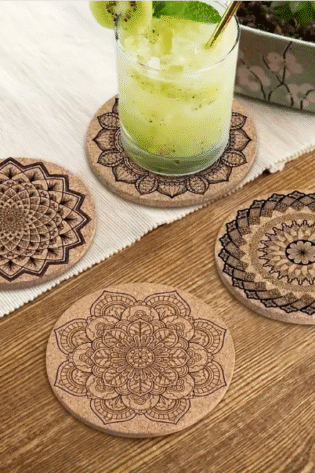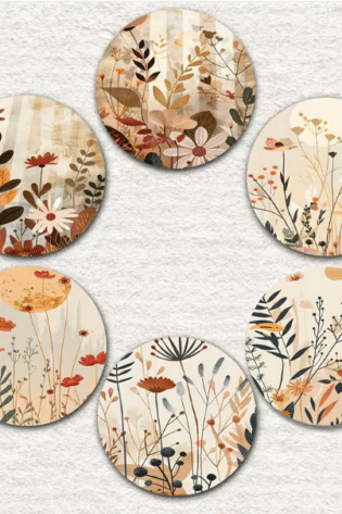 6 pcs Set, Cork Coasters – Round, Floral Design | Non-Slip, Heat-Resistant Table Mats for Dining & Living Room Décor.