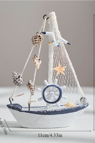 1 Pc, Shell Boat in The Mediterranean Style, Wooden Sailboat