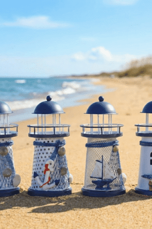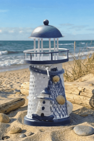 1pc, Chic Mediterranean Lighthouse Candle Holder – Hand Painted, Blue & White, Tabletop Décor
