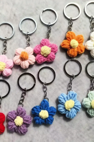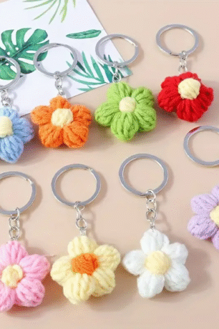 2 pcs, Stylish Handmade Crochet Faux Wool Keychain for Mobile, Bags, Random Colours..
