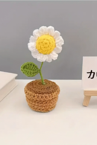 1 Pc, Handmade Crochet Potted Plants – Vibrant Coloured Flower Decor with Brown Pot.
