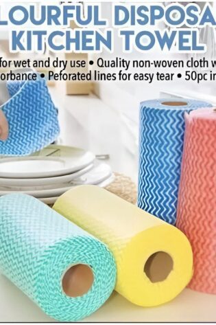 50 Pcs Roll, Reusable Disposable Kitchen Cleaning Cloths – Oil-Free, Multi-Purpose Towels for Surface Cleaning, Dishwashing & Scrubbing