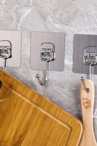 5 Pcs, Strong Adhesive Hooks, Metal Hooks for Multi-Purpose Door & Wall Hanger for Kitchen, Bathroom, Entryway – No Drill/Adhesive Back