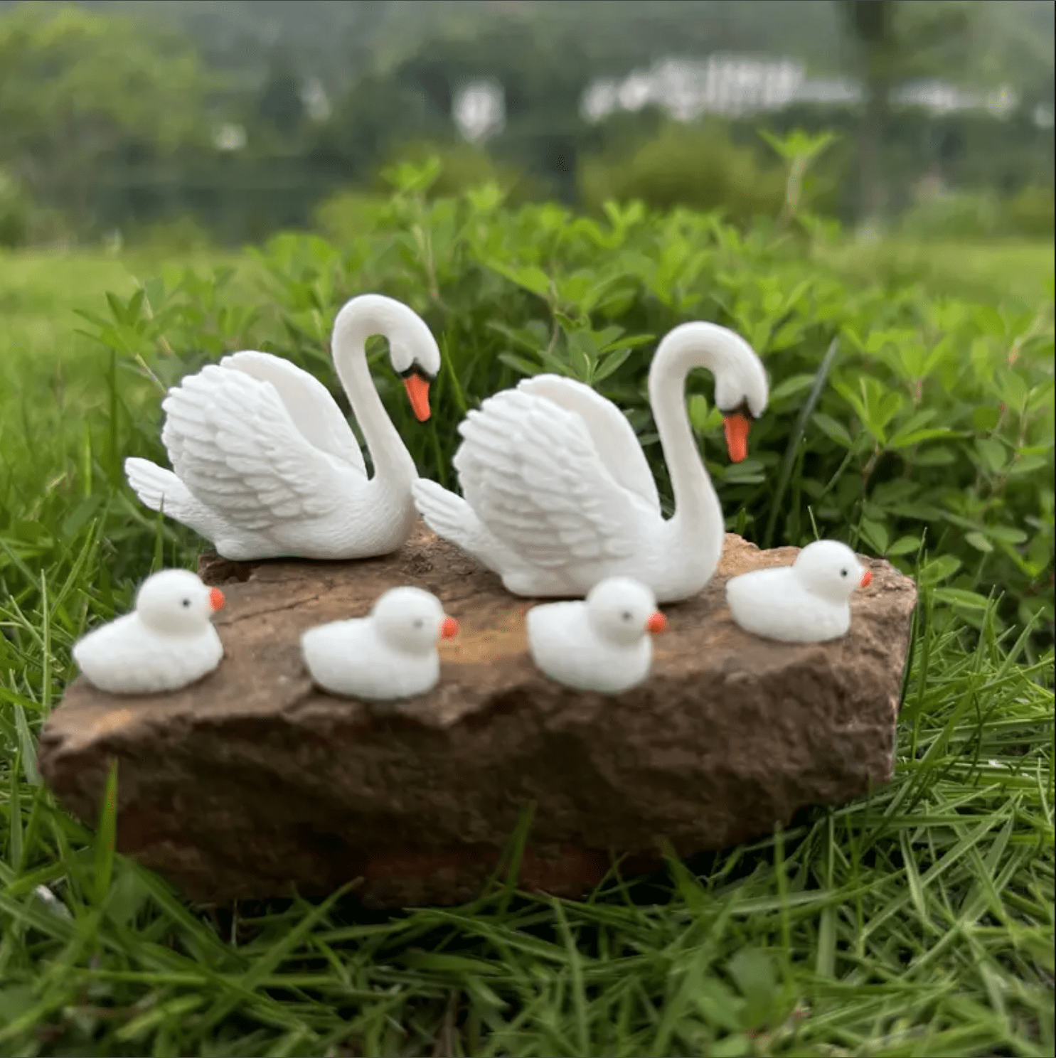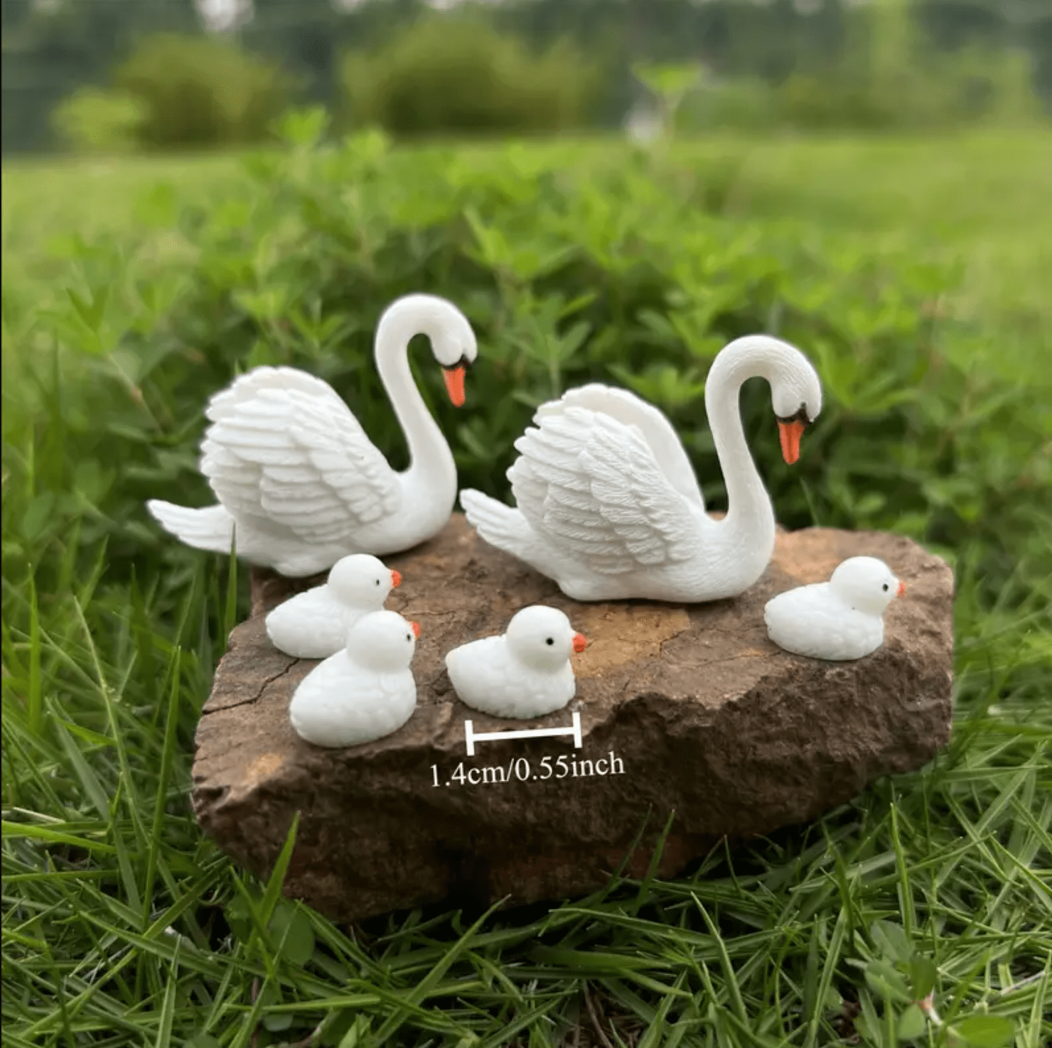 6 Pcs Set, Elegant Family of Swan Mini Figurines – 2 Swans with 4 Adorable Babies, Heartwarming Home Decor, Perfect Garden Or Living Room Centerpiece, Resin Figurine.