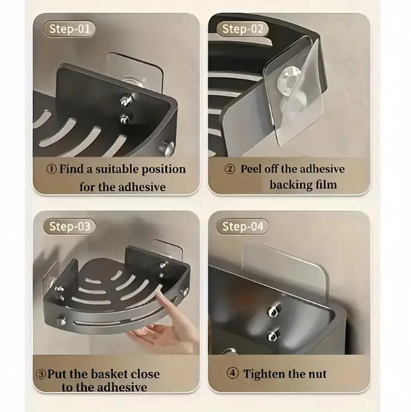 1 review for 2pcs Bathroom Corner Shower Caddy, No-Drill Adhesive Wall-Mounted Shampoo Holder for Bathrooms, Holds Up to 6 Bottles.