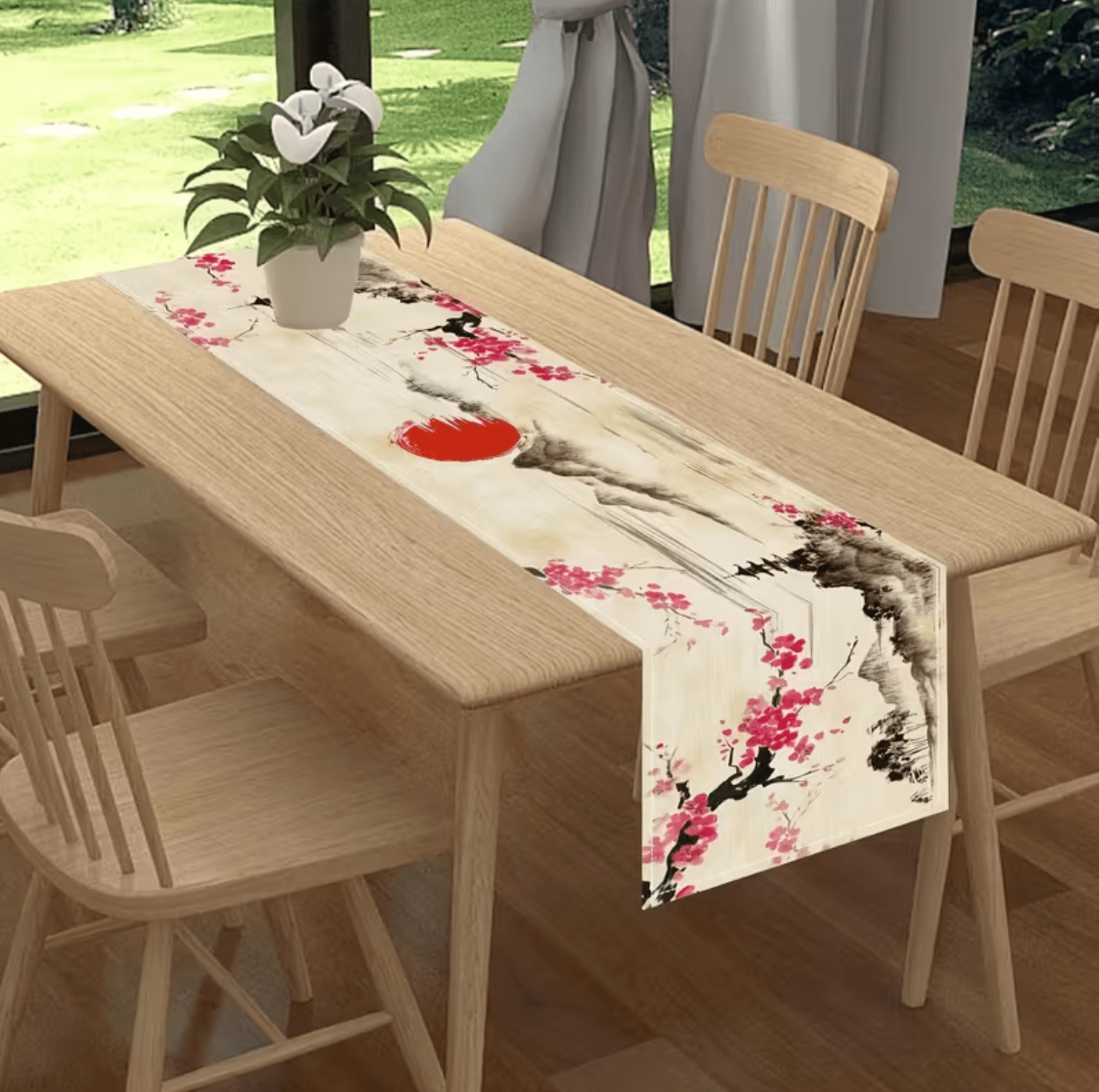 Be the first to review “1 Pc, Beige Vintage Asian Cherry Blossom Linen Table Runner – Woven Rectangular Tabletop Decor with Painting Landscape Design.” Cancel reply