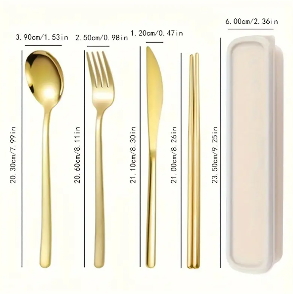 1 review for 1 set, Stainless Steel Portable Cutlery Set, Includes Fork, Knife, Spoon and Chopsticks.