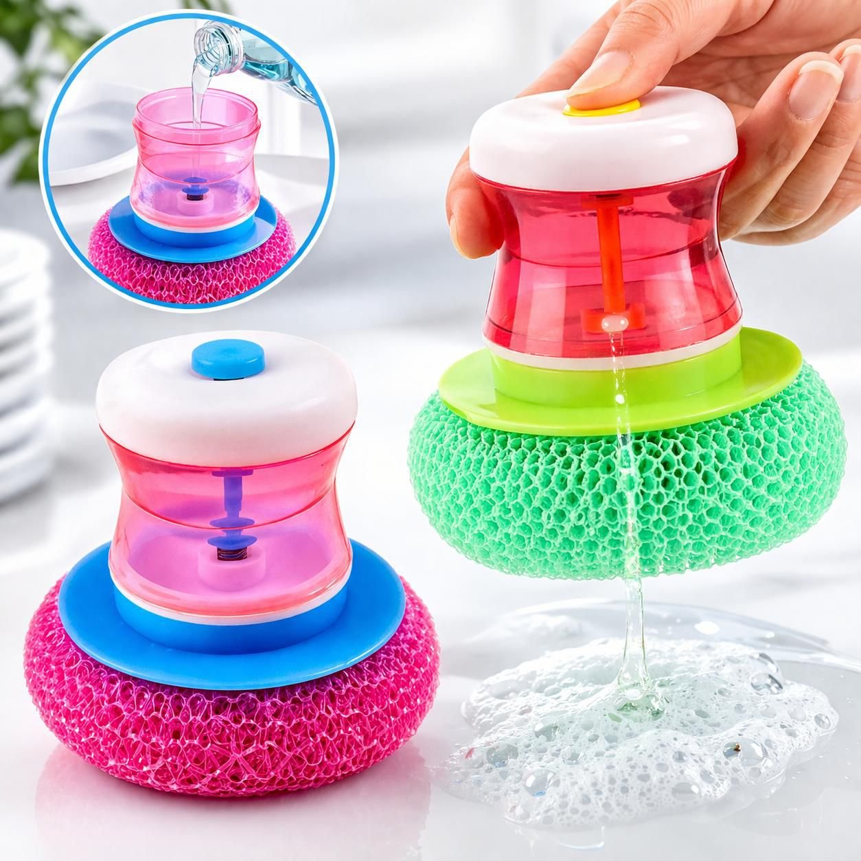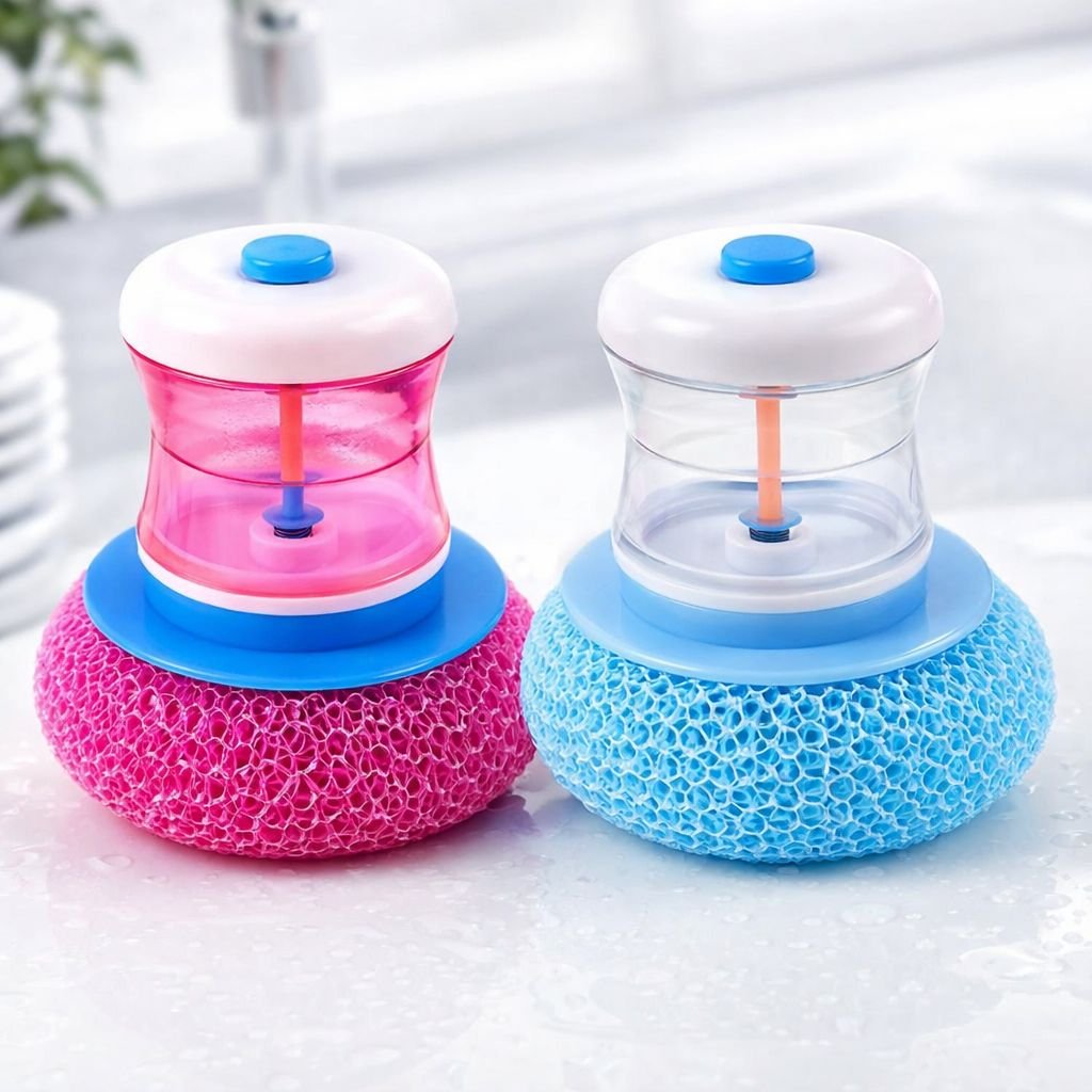 Add to cart1 Pc, Liquid Soap Dispensing Kitchen Dish Washing Scrub, With Built-in Liquid Dispenser, Refillable