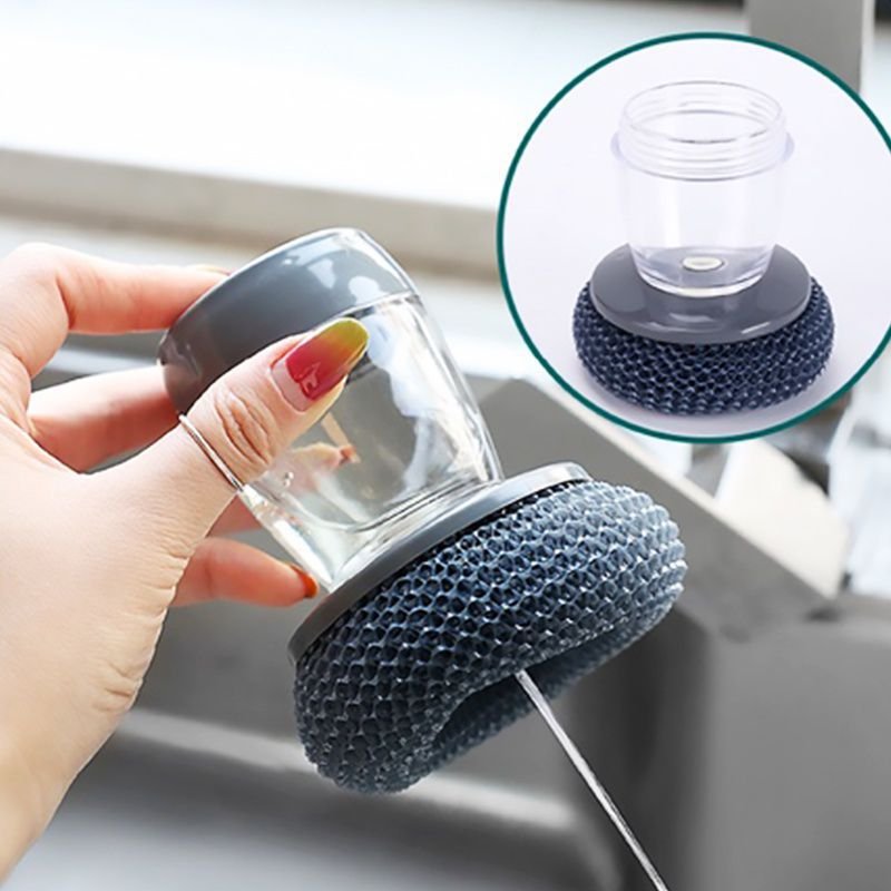 1 Pc, Liquid Soap Dispensing Kitchen Dish Washing Scrub, With Built-in Liquid Dispenser, Refillable