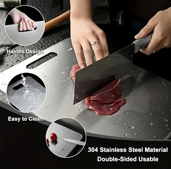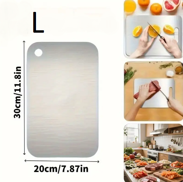 Add to cart1pc, of food-grade stainless steel cutting board, suitable for fruits, vegetables, and meat slicing. Easy to clean.
