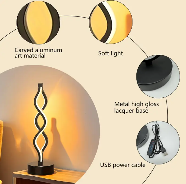 Add to cart1pc, LED plug-in spiral table lamps, USB powered, three-color adjustable, café bedroom bedside decoration night light, super good-looking and durable.