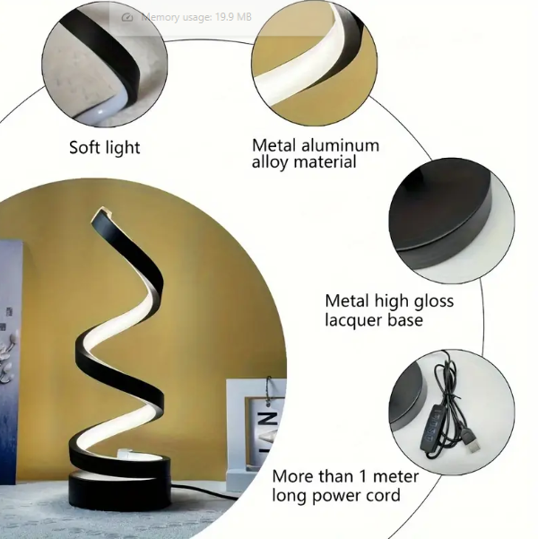 Add to cart1Pc, Modern Spiral Desk Lamp – Metal & Plastic Adjustable Lighting with Cord, Soft Glow, Switch Control, for Various Room Types, USB Powered