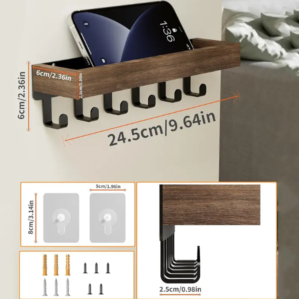 Be the first to review “1pc, Rustic Wooden Key Holder with 6 Hooks, Wall-Mounted Organizer – Ideal for Entryway, Bedroom, Office.” Cancel reply