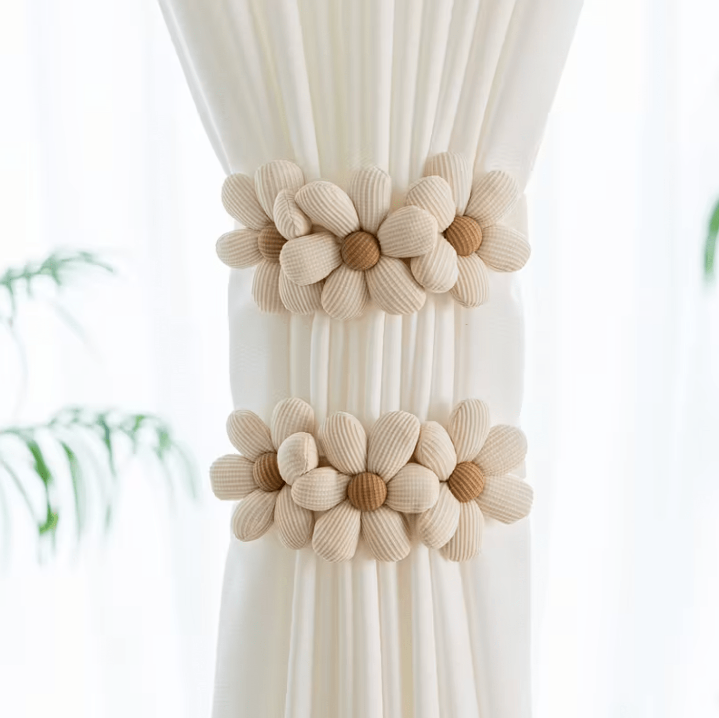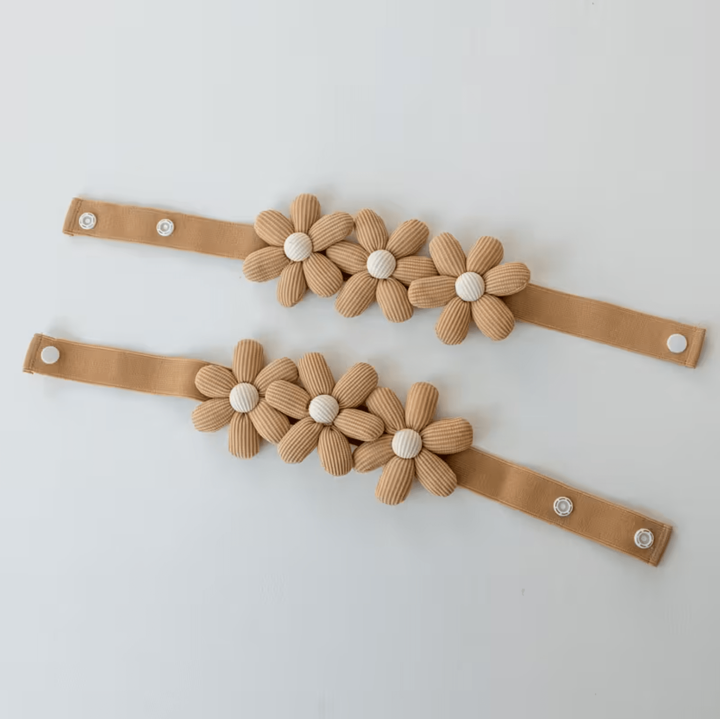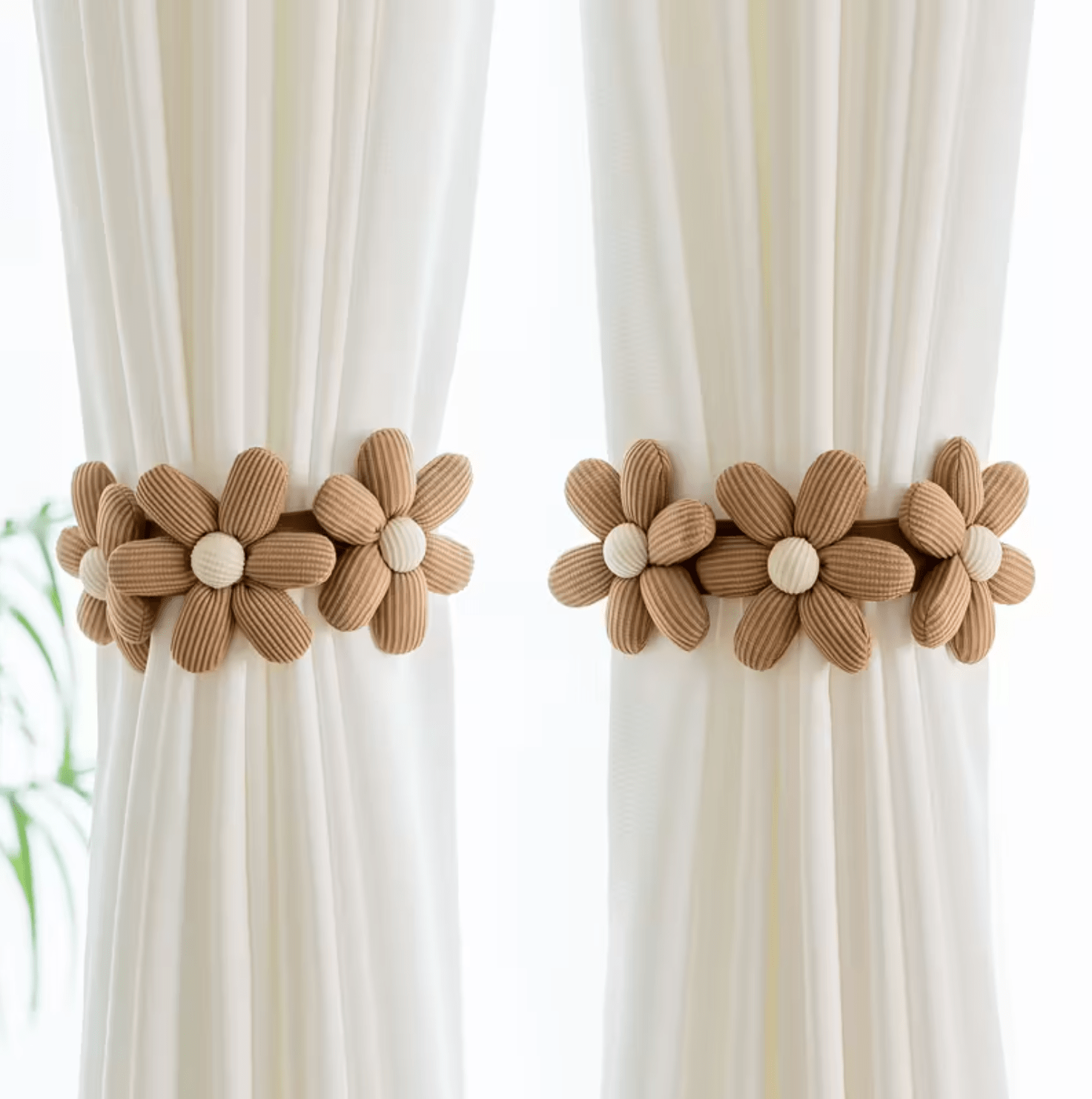 2 Pcs Set, Flower Designs with Floral Patterns, Adjustable Snap-Button Curtain Ties in a Bohemian Style, Elastic Curtain Holders.