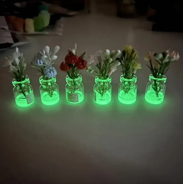 5 pcs, Glow-in-Dark Resin Mini Vase Set – Décor for Car Dashboard/Home/DIY Crafts with Lifelike Flowers