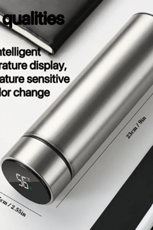 1 Pc, 500ml, Temperature Display Stainless Steel Insulated Water Bottle, Smart Tea Separation, Non-Slip, Dry Battery Powered, Reusable, with Lid.