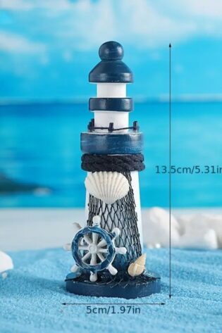 1 pc, Hand-Painted Wooden Lighthouse Statue – Hand Crafted Nautical Theme Beach Decor, Rustic Home & Event Decoration for Indoor/Outdoor Use.