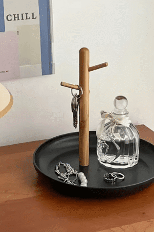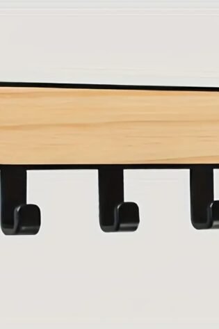 1 Pc, Modern Minimalist Key Holder, No-Drill Wall Utility Hook (3 Hooks)- Self-Adhesive, Wood Finish, Easy Installation for Doors, Windows, Walls.